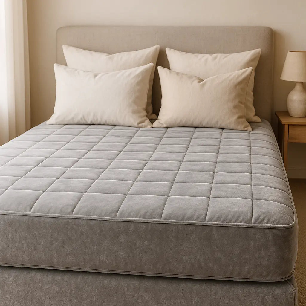 Ce modèle gris offre une protection complète du matelas tout en apportant une sensation douce et réconfortante. Sa texture à relief ajoute une touche moderne à la chambre.